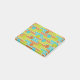 Dieses Post-It Notizblock hat ein modernes Design aus sich wiederholenden Rechtecken in Kalkgrün, Zimtbraun und Türkis mit Kreisen, die oben angeordnet sind.