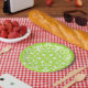 Dieses weiße Mandala sitzt auf einem grünem Kalkboden. Die Farben sind belebend und hell. Teil der Erghenn Mandala Kollektion.