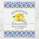 Limoncello Calligraphy Watercolor Lemons Blue Tile Weinetikett