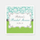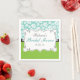 Diese Brautpartypapierserviette kennzeichnet weiße Rosen auf einem Aquahintergrund auf der Spitzenhälfte und einem Limonen Grün auf der Unterseite. Ein niedlicher weißer Wirbler Rahmen mit einer schwarzen Grenze in der Mitte kennzeichnet kundengerechten Text, damit Sie den Namen der Braut und Brautpartydatum addieren.