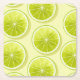 Ein Muster aus frischen und saftigen Limonen Scheiben in leuchtenden, lebhaften Kalktönen, mit einer Aquarellstruktur, die ihm das frisch geschnittene Aussehen verleiht. Sie sind auf einem hellgelben/grünen Hintergrund platziert, um einen hellen & sommerlichen Look zu erhalten.