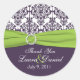 Dieser 1,5"-Durchmesser danke Ihnen Aufkleber/Umschlag Aufkleber passt zu der Limettengrün und lila Damast Einladung unten gezeigt. Es gibt auch eine passende Portografie, damit Sie eine schön koordinierte Dankeschön-Karte ausschicken können, oder Sie können die Aufklebergröße auf 3 Zoll im Durchmesser verändern, was ideal wäre, um Ihre Hochzeit/Gastgeschenke zu schmücken. Wenn Sie weitere passende Artikel in diesem Design benötigen, schicken Sie mir bitte Ihre Anfrage an niteowlstudio@gmail.com.