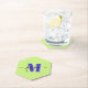 Personalisierte Monogramm-Untersetzer mit Limonem und lila Farbduo. Verfügt über Vornamen und zuletzt Ersteingabe in flockigem Skript über fette Serifentypografie. Akzentuieren Sie Ihre Dekoration mit individuellen Untersetzer!