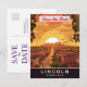 Lincoln Save the Date Hochzeitseinladung, Reise Postkarte. Sonnenuntergang über der Stadt.