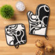 Lineare Überzeugung II: Abstrakt Schwarz und Weiß Ofenhandschuh & Topflappen-Set