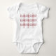 Dieser Baby-Bodysuit hat ein modernes Design aus Himmelsbeeren mit vertikalen Linien, die horizontal auf einem weißen Feld angeordnet sind.