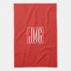 Linge De Cuisine 3 Initiales Monogramme | Rouge et blanc (ou couleu