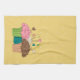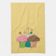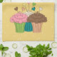 Un arrière - plan jaune avec le à petits pois blanc, et trois petits gâteaux colorés décorés d'un bon nombre de goupilles de coeur