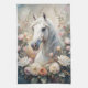 A white horse surrounded by flowers