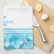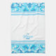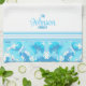 Linge De Cuisine Abstrait bleu clair et blanc avec rayures & nom