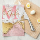 Cette serviette de cuisine est ornée d'une élégante et glamour arrière - plan en marbre rose et blanc agate aux accents de parties scintillant faux or. Le monogramme combine écriture manuscrite et polices sans serif modernes pour un look élégant et sophistiqué. Cela fera le cadeau idéal car il peut être customisé avec un nom et une initiale. Les paillettes et la texture en mauvais état créent un mélange parfait de chic et de grunge.