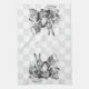 16" x 24" serviette de cuisine avec une Alice noire et blanche vintage dans l'image du pays des merveilles du chapelier et des lièvres fous de mars bourrant le loir dans une théière sur un arrière - plan gris et blanc de damier. Serviette de cocktail de papier d'assortiment See, set de table de tissu, set de table de papier et dessous de verre. Voyez la collection entière de serviette de cuisine du pays des merveilles dans la section de toiles de FOOD/BEV |.