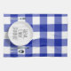 Commande de dispositif électronique Alexa pour dîner de cuisine avec réglage argenterie et plaque ronde blanche sur blanc et bleu buffle plaid arrière - plan