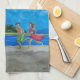 Un heureux couple court sur une plage tropicale à Hawaii par un Coco Palm. Une belle journée au soleil Combien de plaisir! Un moment mémorable qui fait un cadeau mémorable pour quiconque aime se tenir à la plage ou veut simplement aller!