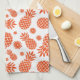 Serviette à thé à motifs à ananas et à fleurs, conçue exclusivement par Sarah Trett pour www.mylittleeden.com. Montré ici en orange mais vous pouvez personnaliser l'arrière - plan à la couleur ou aux couleurs de votre choix.