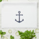Serviette de cuisine minimaliste moderne avec ancre bleu marine sur arrière - plan blanc.