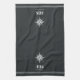 Une serviette de cuisine simple et élégante sur mesure portant le numéro de votre maison et le nom de votre rue en lettres blanches sous une illustration de boussole nautique. Fait un grand cadeau de clôture de courtier, cadeau de chauffage au foyer, ou une touche de finition unique pour votre maison de location de vacances ou maison de plage.