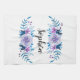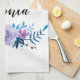 Serviette de cuisine avec décor romantique bleu & violet aquarelle fleurie design et nom ou monogramme personnalisable.