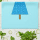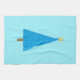 Une prise moderne simplifiée sur une serviette classique à motifs d'arbre de Noël, bleu cérulean, étoiles texturées satinées sur un arrière - plan bleu aqua