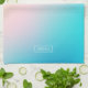 Arrière - plan iridescent bleu et rose doux avec une typographie monographique blanche personnalisée.