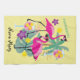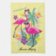 Fête tropicale super drôle avec flamants roses, boissons et feuillage tropical. Texte personnalisé