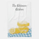 Serviette de cuisine illustrée à la main, adorable, avec un citron et un citron et un joli plaid bleu clair. Idéal pour une cuisine de campagne ou une touche de maison.