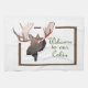 Tête d'orignal avec "Bienvenue à notre cabine"