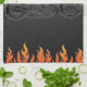 Linge De Cuisine Black Leather Orange Flames