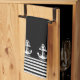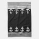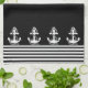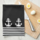 La serviette de cuisine élégante et décorative présente des rayures noir et blanc nautiques à ancres blanches sur un arrière - plan noir que vous pouvez facilement changer de couleur. Objets correspondants disponibles dans notre magasin. www.zazzle.com/giftsforanyoccasions*