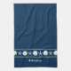 Parfait pour la décoration de la salle de bains côtière, cette serviette de cuisine personnalisée sur le thème de la plage dispose d'une rangée de dollars de sable blanc et d'étoiles de mer, avec le nom sous, sur un arrière - plan bleu marine. *Si vous avez besoin de modifications de conception ou si vous souhaitez plus de produits avec ce design ou d'autres couleurs, veuillez me contacter par Zazzle.