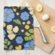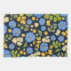 Ce joli motif floral Spring présente des fleurs de primrose zébrée bleues, des éléments foliaires et des feuilles de fougères vertes ainsi que deux bleuets volants. OEuvre dessinée à la main, originale.
