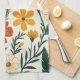 Des fleurs rustiques, dorées et ivoire, avec des feuilles verts sur un arrière - plan crème créent un joli look de campagne sur cette serviette de cuisine.
