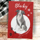 Bordure Collie Dessin Paw Joyeux serviette de cuisine de Noël. Dessin collie de bordure amusant et mignon. L'arrière - plan est rouge avec des flocons blancs et des empreintes de pattes noirs. Personnalisez la serviette avec le nom et l'année. Un joli gardien de vacances pour un collier frontalier propriétaire.