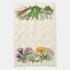 Belle serviette de cuisine aux herbes. Les herbes médicinales forment une large bordure à chaque extrémité des serviettes blanches. Les petites libellules flottent dans l'arrière - plan. Les herbes présentées comprennent des fleurs de fil blanc, des calendules jaunes, des burdock violet, de l'aloe, du couvre-feu et plus encore. La conception est imprimée sur un seul côté. Dans les deux cas, une jolie décoration fleurie se dessine. Parfait pour la cuisine d'un herboriste, ou naturaliste.