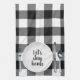 Plaque de diner blanche avec argenterie sur la ferme motif blanc et noir de buffle plaid et texte "Restons à la maison". Le texte est modifiable.