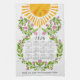 Ce calendrier personnalisé de serviettes de cuisine 2026 présente une illustration mignonne de soleil et de fleurs roses et un modèle texte disant Paix, Joie, Amour et Nom de famille. Tapez votre nom de famille et vos salutations ou un autre texte en utilisant le modèle pour faire un cadeau élégant pour le jour de Thanksgiving, Noël, Nouvel An en toute occasion.
