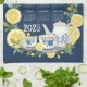 Ce design de serviettes de thé calendrier 2025 magnifiquement illustré rayonne de charme avec son thème vibrant citron. Encadrées de branches et de tranches de citron, les oeuvres d'art associent des tons d'agrumes frais et zestifs à des set de thé bleu délicat