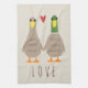 Deux canards mignons tenant des mains. Le texte d'AMOUR peut être changé.