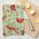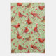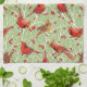 Envahissant des cardinaux illustrés dans des arbres d'hiver enneigés peuplent cette belle serviette de cuisine. Arrière - plan vert céleri. Voir plus de décoration de maison de Noël avec ce motif. Par l'artiste-concepteur de motifs de surface L. Diane Johnson.