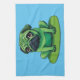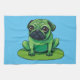 Carlin vert mignon ressemblant à une grenouille assise sur un lilipad. La couleur Arrière - plan peut être modifiée.