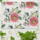 Illustration botanique ancienne des camélias en rose, rouge et blanc.