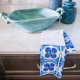 Inspiré par un récent voyage au Portugal, ce design provient des azulejos complexes qui ornent les villes portugaises. Cette serviette design en tuile ajoute une pop de couleur et un charme européen à toute cuisine !