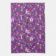Cette serviette de cuisine est décorée de champignons et de fleurs psychédéliques et brillants illustrés dans les tons rose chaud et violet.