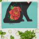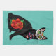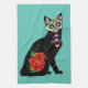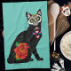 Un chat noir avec le jour du maquillage du crâne de sucre mort sur fond de turquoise