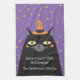 Un mignon chat d'Halloween noir avec un casquette décore cette serviette de cuisine. Personnalisez-le pour Halloween avec votre nom de famille. Fait un cadeau mignon pour un ami pour Halloween. Conçu pour vous par Blackberry Boulevard.