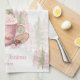 Chocolat chaud & Cookies Serviette de cuisine de Noël rose avec tasse au chocolat chaud, arbres et pain d'épices en rose, beige foncé et vert. Design de Noël élégant et mignon. Personnalisez facilement le texte. Visitez le magasin pour découvrir la gamme complète de produits disponibles - Kate Eden Art