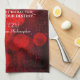 Cette serviette de cuisine présente une citation de Lao Tzu, ancien philosophe chinois. La citation commence par nos pensées, et se termine par notre destin, beaucoup de choses à penser. L'arrière - plan est l'oeuvre abstraite originale de ZoeSPEAK de formes dans les nuances de rouge riche et un éclat de jaune, derrière un motif de gouttes de pluie.