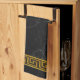 Serviette de cuisine noire de 16" x 24" avec image de marbre noir et bordures de clés grecques noires et métalliques d'or. Voir serviettes assorties, serviettes en papier, set de table en tissu, set de table en papier et dessous de verre. Voir toute la collection Toga Kitchen Towel dans la rubrique FOOD/BEV| Section Linens.