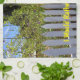 Une clôture blanche avec un grimpeur vert à feuilles poussant haut et sur le point de passer par la clôture.
