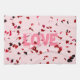 Les coeurs rouge et violet volent en l'air contre l'arrière - plan rose. Bonjour à Valentive's Day ! Joie et amour sont dans l'air ! Text LOVE sur certains produits. T-shirts, imprimés et cadeaux pour le plaisir et la bonne humeur et pour célébrer la Saint-Valentin